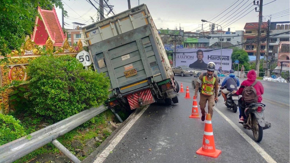 Грузовик попал в аварию на спуске с холма в Патонге Очередной водитель грузового автомобиля не справился со спуском с холма Патонг-Хилл. Авария произошла около 11:10 утра 28 августа и обошлась без жертв. В сообщении полицейского участка Патонга говорится, что «шестиколесный грузовик упал за пределы проезжей части на подъезде к храму Wat Suwan Khiri Wong». В качестве причины происшествия называется «отказ тормозов», но без уточнения, имеется ли в виду техническая неисправность или недостаток навыков у водителя. Из-за аварии оказалась заблокирована одна из полос на финальном отрезке дороги у въезда в Патонг. Однако грузовик не вылетел на встречную полосу и не зацепил никакое из других транспортных средств. Сам водитель также не пострадал. Полиция Патонга не уточнила, планирует ли она предъявлять обвинения водителю. Регион регистрации автомобиля указан на номерных знаках как Бангкок. Днем ранее на том же участке шоссе проблемную ситуацию создал водитель микроавтобуса, не уследивший