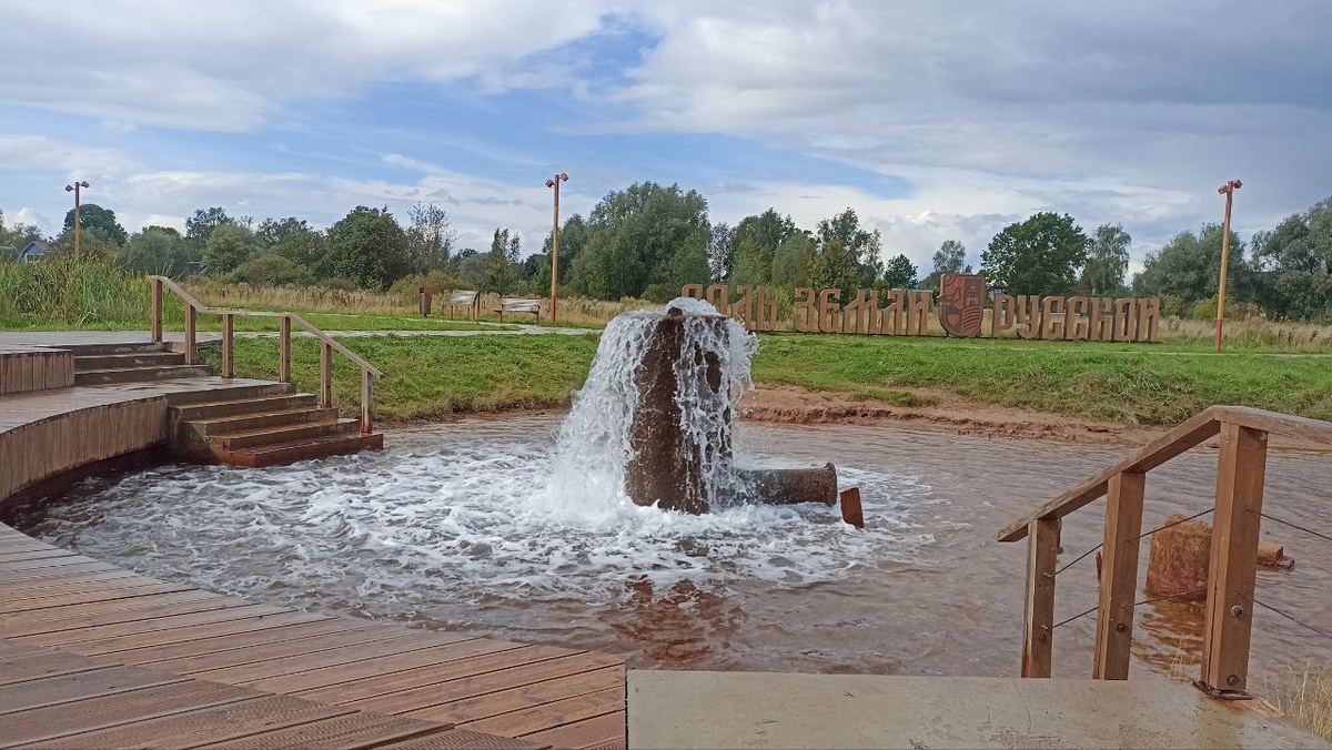 Я там бывала много раз. Родом из Старой Руссы была наша последняя собака с мужем: мопс Степан Федорович Старорусский. И в курортном парке гуляли, и в Георгиевской церкви и у водонапорной башни и просто по улицам. Но я не ездила сама к Царицынскому источнику. Так что цель у меня была и я не люблю носиться по городу чтобы отметиться в стратегических местах и сделать сэлфи на фоне. Ну не люблю я бегать сломя голову, люблю с толком с расстановкой всё рассмотреть, желательно пощупать и потупить. Да и рулить по незнакомым улицам с навигатором и впечатления какие-то получить - плохосовместимые это функции. Так что я приехала по навигатору и пошла смотреть источник. Там парк еще по дороге был, скверы, смотровые площадки, собор стоит но я мимо - мне к скважине. Еще день такой выдался -временами дождь, в промежутках небо. В деревне почти ясно, за Коростынью начался ливень, я чуть челюсть не вывихнула от зевоты и кофе хотелось до жути. В Старую Руссу влетела, дождь только закончился, но тучи висели. На стоянке три машины, народу нет. Хочу похвалить - это место, удобное для туристов: дорожки, стоянка, раздевалка, площадка для детей - благоустроено. Я то привыкла по закоулкам шариться, типа источника Щелинского и кладбищ на краю географии. А тут просто европейский комфорт, ну в моем понимании, я то там не была. Для меня если трава скошена уже ухожено. А тут скамейки, дорожки, мусорки - ляпота. Вообще говорят воздух целебный на курорте, да я ещё приехала на излете ливня, воздух и так свежий после дождя, а тут еще источник минеральный. Реально минеральный - вода холодная и соленая, конечно я попробовала! Этот воздух можно по банкам расфасовывать и в мегаполис поставлять. Настолько он насыщен свежестью и озоном.
