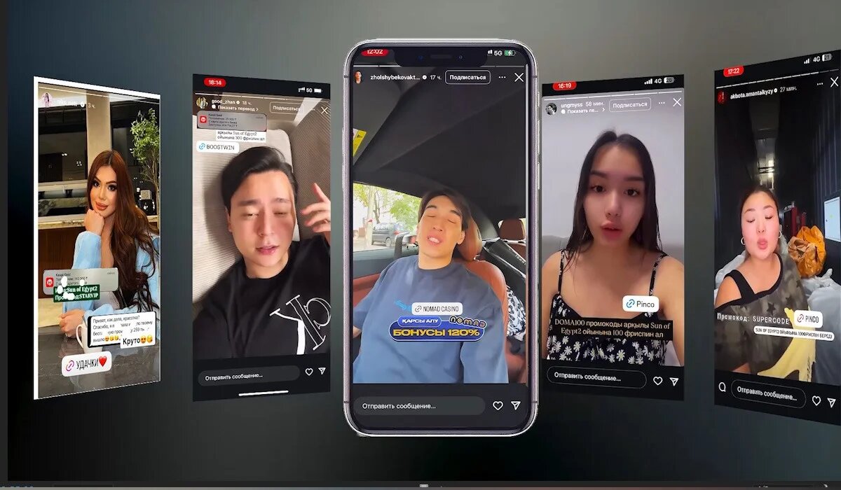 Однако теперь основная угроза переместилась в онлайн-сферу. Казино, зарегистрированные за рубежом, настойчиво вовлекают казахстанцев в азартные игры, превращая их в жертв лудомании. В этой схеме активную роль играют и популярные блогеры – Қайсар Қамза, Шынгысхан Копбаев (известный как Baller), Наиль Турганов, Нургазы Токтаров, Мариям Кулжабаева, Зухра Хакиева, Диана Халметова, Асем Аубакирова, Арина Байкова, Кумисай Айымбетова и другие.