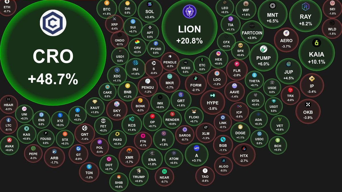 📊 Ежедневный обзор рынка криптовалют от Coinbubbles.ru 🗓 28.08.2025 09:30 по Москве. 🔗 Посмотреть на сайте 📈 Лидеры роста (из ТОП-100): 🟢 Cronos (CRO): $0.3421 (+48.7%) 🟢 Loaded Lions (LION): $0.0265 (+20.8%) 🟢 Kaia (KAIA): $0.1579 (+10.1%) 📉 Лидеры падения (из ТОП-100): 🔴 OKB (OKB): $168 (-3.9%) 🔴 Hyperliquid (HYPE): $48.38 (-3.8%) 🔴 Aerodrome Finance (AERO): $1.2709 (-3.7%) 🔍 Основные метрики: 🟢 Общая капитализация: $3907.24 млрд (+0.95%) 🔴 Общий объем торгов: $174.64 млрд (-2.22%) 🟢 Доминация Bitcoin: 57.57% (+0.31%) 🔴 Доминация Ethereum: 14.11% (-0.25%) 🔴 Индекс страха и жадности: 48 / 100: СТРАХ (-3) 🟢 Индекс Альтсезона: 46 / 100: НЕ АЛЬТКОИН-СЕЗОН (+4) 📖 Интересные статьи: 👉 Что такое роллапы? Объяснение ZK-rollup и Optimistic rollup. 👉 Выбираем ОС для майнинга криптовалют. 👉 Актуальный хешрейт видеокарт 2024.
