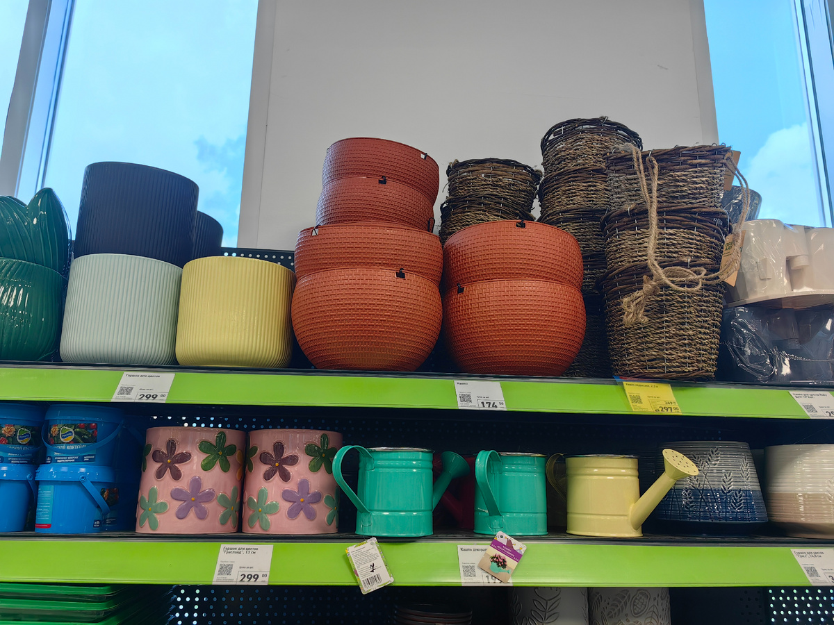 Друзья, а в Фикс-прайсе есть таки новиночки. При чем ассортимент разный. Я сходила в два московских и один калужский. Пересечений много, но есть и прямо новенькое и разненькое) Начнем с Калуги и дополним Москвой) Во-первых керамические горшки новые появились. Я керамикой пользуюсь только для суккулентов и кактусов, все прочие у меня в основном в пластике. Но полюбопытствовать керамикой мне нравится. Очень я люблю разные вот такие жестянки. Если их еще и перекрасить по своему, то вообще будет праздник для глаз! В исходнике нашла три цвета таких леечек. Новенькие бежевые горшки с фактурным рисунком трех вариантов. Такие же видела и в Москве. Уже привычные глазу овальные горшочки двойные пластиковые. Из нового пластика нашла вот такие горшки-дуэт. Два горшочка на общей подставке. Видела похожие на маркетплейсах на 3 и 4 горшка. Было четыре цвета. Ну и, конечно, мой любимый посудный отдел. Тут нашлись вот такие тарелки большого диаметра. Ну чисто подносики для объединения нескольких горшоч