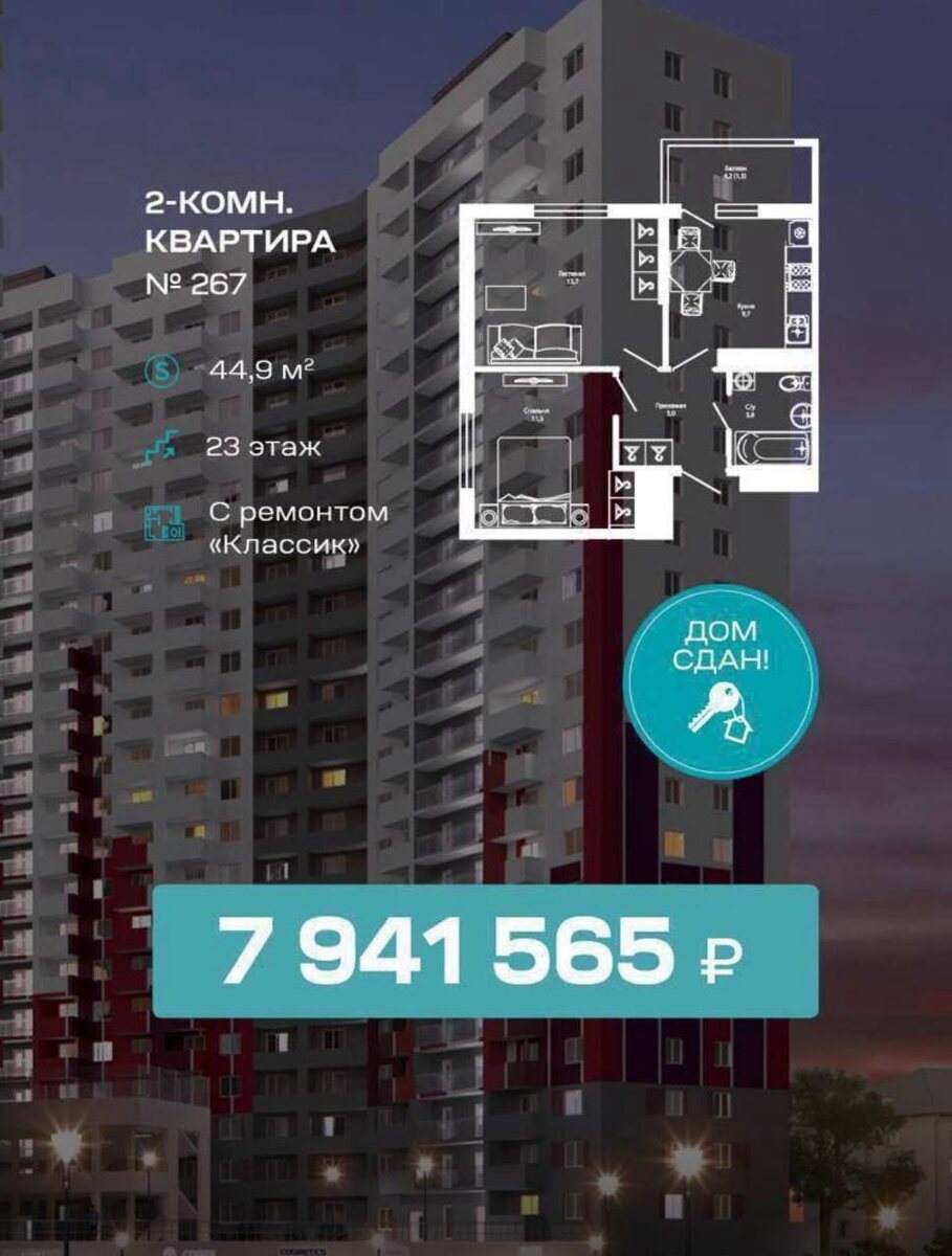 Квартиры с ремонтом в новом доме.