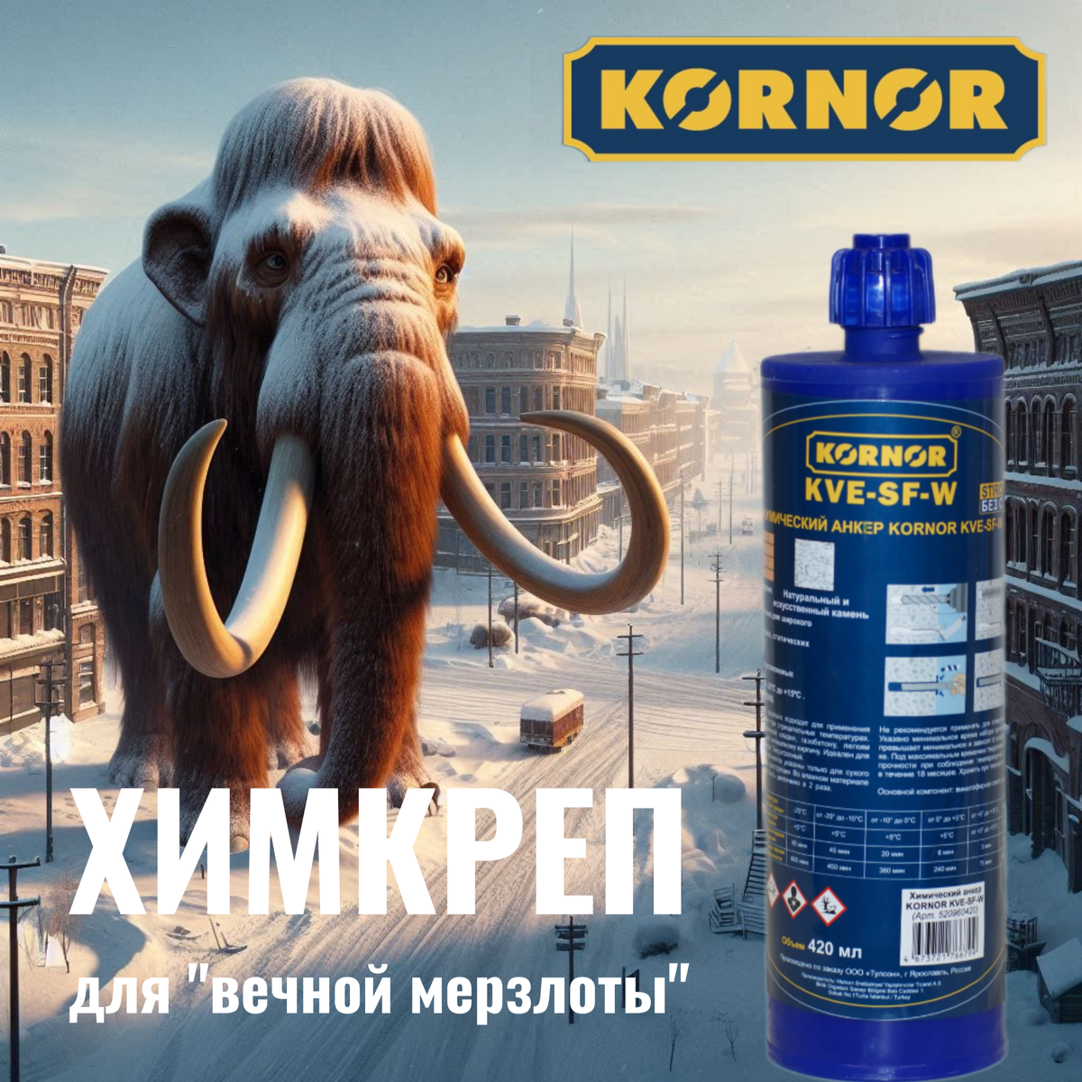 Допустим, что мы не просто говорим о стройматериалах, а собираемся в суровую арктическую экспедицию, где обычные технологии сдаются без боя. А теперь представьте, что вам нужно закрепить тяжелую конструкцию — опору ЛЭП, фундамент вышки или каркас здания — в грунт, который больше похож на камень, чем на землю. Это не просто грунт, это вечная мерзлота — смесь льда, камня и промерзшей земли, которая живёт по своим суровым законам. Обычный анкер, который расклинивается как якорь, здесь бесполезен. Он будет держаться только за лёд, а лёд… он тает, подвижен и непредсказуем. Это как вбивать гвоздь в кусок сливочного масла, вынутый из морозилки: сначала держится, а потом расшатывается. Вот тут на сцену выходит химический анкер — не механический «крюк», а химический «сварщик». Он не расширяет породу, а становится её частью. Но не любой химический анкер подойдет для этой ледяной крепости. Ему нужны суперспособности. Какими суперспособностями обладает «зимний» химанкер KORNOR? 1. Морозостойкос