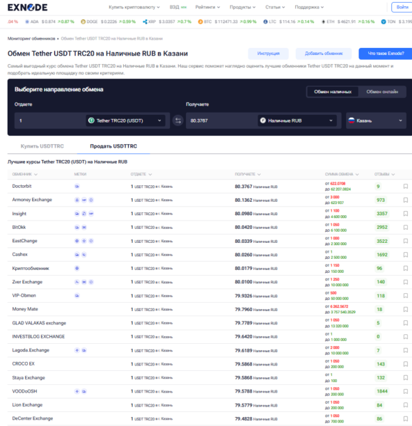 Надежность сервиса легко оценить через отзывы, рейтинги и упоминания на специализированных ресурсах вроде Exnode. Если обменник крипты в Казани имеет положительную репутацию и стабильно работает, это хороший знак для тех, кто планирует обмен USDT в Казани или обменять другие криптовалюты.