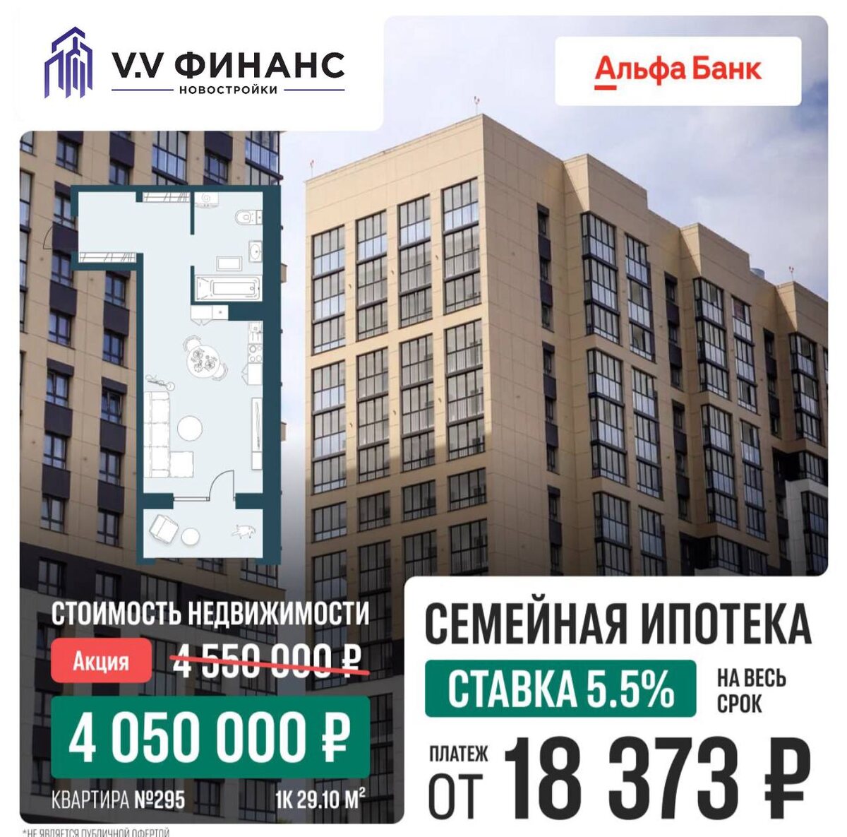⚡️ Квартира в сданном доме со скидкой 500 000 ₽. Первый взнос материнский капитал. Квартал на левом берегу ✅ ДОМ СДАН ✅ 1к студия ✅ Площадь 29,10 м2 ✅ Цена 4 550 000 ➡️ 4 050 000 ₽ Семейная ипотека от Альфа-Банка: 5,5% на весь срок, без удорожания 🟢 Ежемесячный платеж 18 373 ₽ Ставь «+» для консультации👇