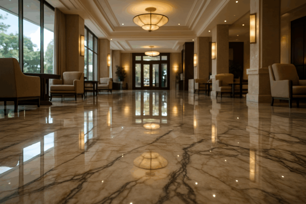 Проблема потери блеска и появления микроцарапин на мраморных полах эффективно решается с помощью профессиональной полировки каменных полов. Современные технологии позволяют восстановить до 95% первоначального глянца даже на сильно поврежденных поверхностях.