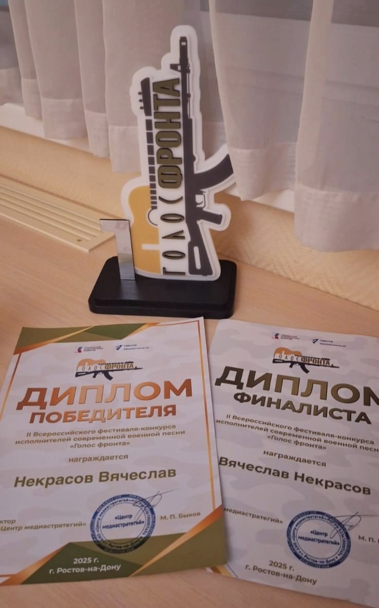 🎤✨Поздравляем нашего талантливого артиста Славу Некрасова с блестящей победой во II Всероссийском фестивале-конкурсе исполнителей современной военной песни «Голос фронта»! 🌟 Недавно в городе Ростов-на-Дону состоялся грандиозный конкурс, где юное дарование показало себя с самой лучшей стороны. Слава заслуженно завоевал звание лауреата I степени, став абсолютным победителем среди участников своей возрастной группы — до 18 л Сам конкурс «Голос фронта» направлен на сохранение исторической памяти, развитие творческих способностей юных артистов и укрепление духа патриотизма. Фестиваль помогает раскрыть потенциал будущих звезд сцены и даёт мощный импульс профессиональному росту новых поколений российских певцов. Мы уверены, впереди у Славы новые достижения и яркие выступления!