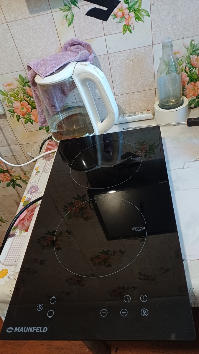 А хорошо все таки быть безработным. Проснулся во сколько захотел, лёг спать во сколько захотел. Ещё бы денег просто так давали, но это уже перебор. Главное, что сервисный центр исправно снабжает работой, а ремонтами я занимаюсь под настроение и не торопясь. Варочная панель MAUNFELD, принесли её с жалобой, что нижняя конфорка не работает. Обычно в подобного рода плитках общий только блок управления. Да и то не всегда. Встречались двухконфорочные плитки, состоящие из двух равноценных блоков, не зависящих друг от друга. Но в этой модели все таки блок управления общий. Включаем в сеть для проверки, ставим кастрюльку и табло показывает, что посуды на конфорке не имеется. Тут уже становится интересно, неисправность может быть в чем угодно. От сгоревшего предохранителя или дорожки, до неисправности блока управления. Если б стрельнул силовой IGBT транзистор, как минимум бы сгорел предохранитель. Но верхняя конфорка работает. Разбираем. Весьма неплохо продуманный аппарат. Индуктивные катушки на