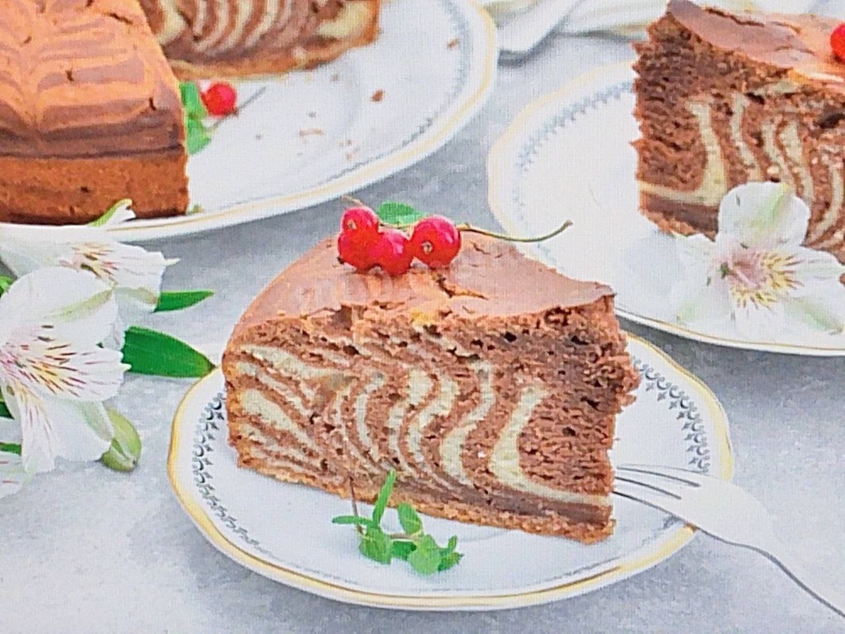 Шаг 1 Как приготовить классический советский торт "Зебра"? Сначала подготовьте все необходимые ингредиенты. Для того чтобы бисквит хорошо поднялся, все продукты должны быть комнатной температуры. Поэтому заранее достаньте их из холодильника. Сливочное масло растопите любым удобным способом и дайте ему остыть к моменту, когда будете взбивать яйца. Яйца тщательно вымойте и обсушите бумажными салфетками. Шаг 2 Начните с того, что возьмите миску и просейте в нее муку. Просеивание обогащает муку кислородом, что делает выпечку более пышной и воздушной. Затем добавьте разрыхлитель, соль и ванилин. Тщательно перемешайте все ингредиенты. Обратите внимание, что количество муки может варьироваться в зависимости от консистенции теста. Для получения более подробной информации о свойствах муки, вы можете ознакомиться со статьей на эту тему, ссылка на которую находится в конце рецепта. Шаг 3 Возьмите отдельную миску и разбейте в нее яйца. Добавьте сахар. Легко взбейте их венчиком, не усердствуя. Они