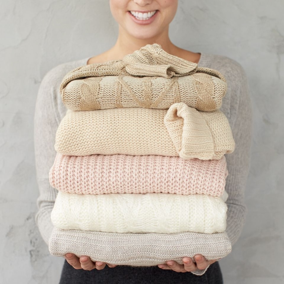 Вязаная одежда не любит вешалки — на них она быстро вытягивается. Сложите вещи аккуратной стопкой в шкафу. А если храните долго, можно положить пакет с лавандой или кедровые палочки — они защитят от моли.