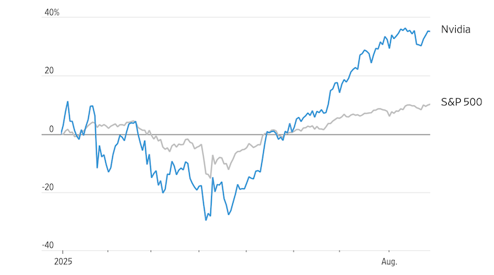 Динамика акций Nvidia и индекса S&P 500 с начала года. Источник: Wall Street Journal
