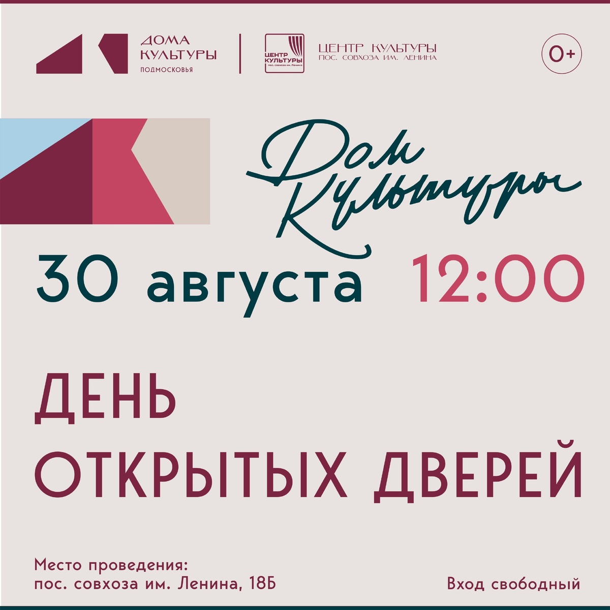 УЖЕ СОВСЕМ СКОРО! Встречаем новый учебный сезон и День поселка! 30 августа. Уличная площадка Центра культуры. 12:00-15:00 День открытых дверей в Центре культуры: - запись в клубные формирования, - открытые уроки и многое другое подробности по ссылке: https://clck.ru/3NqGTM 17:00 Праздничная программа ко Дню поселка: - творческие мастер-классы, фотозоны, фудкорт и сувенирная продукция; - розыгрыш призов для пожилых жителей Ленинского городского округа; - концерт творческих коллективов Центра культуры, а также: Иван Орлов – экс-солист группы Премьер министр Владимир Любич — артист театра, эстрады и кино. Не пропустите! #культура #центркультуры #совхозленина #ГоспабликиМО