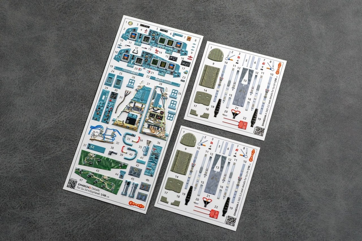 Emboss из Твери выпустила "трехмерную декаль" для деталировки кабины модели Су-34 в масштабе 1/48 от Kittyhawk.