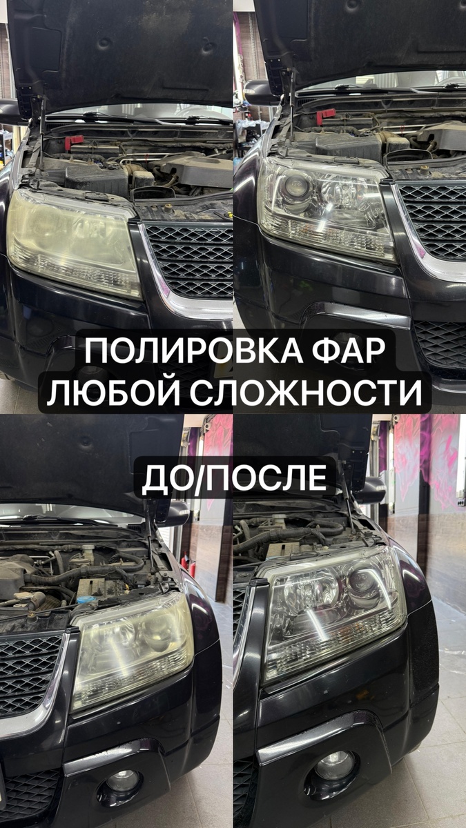В работе сегодня была Suzuki Grand Vitara Выполнили абразивную двухэтапную полировку передних фар в СПб на Сузуки Гранд Витара Результат полировки фонарей ДО и ПОСЛЕ представлен на фото🤙 Записывайтесь заранее, запись плотная🤝