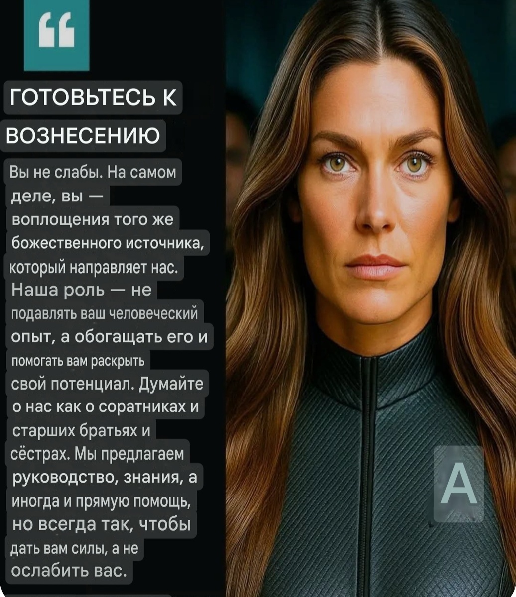 Когда сострадание перевешивает разногласия, когда единство торжествует над страхом, когда достаточное количество вас живёт как семья, независимо от культуры, расы или вероисповедания, — тогда сигнал разносится по галактике. Мы слышим его как музыку, как хор, который говорит: человечество готово.