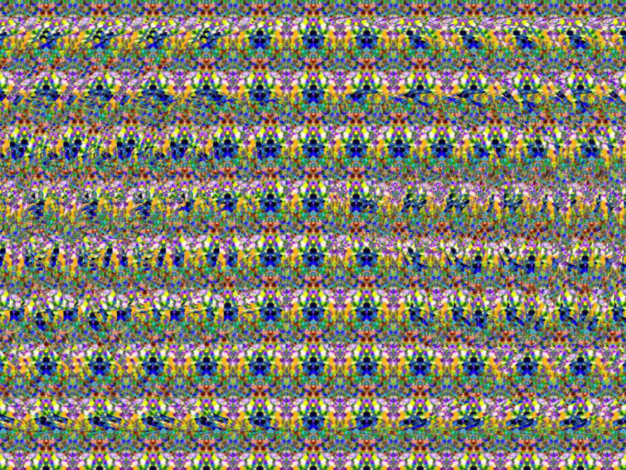 С первого взгляда — хаотичный пёстрый узор. Но если задержать взгляд и «посмотреть сквозь» картинку, то из узоров начинает проявляться трёхмерное изображение: животное, фигура, предмет или целая сцена. Эти изображения называются стереокартинки или автостереограммы. Стереокартинка устроена так: Таким образом, изображение существует всегда, но увидеть его можно только особым способом. Стереокартинки — это не только забавное развлечение из 90-х, но и полезный инструмент для глаз и мозга. Они помогают снять напряжение, тренируют концентрацию и дарят ощущение маленького чуда: когда из пёстрого узора вдруг рождается объёмный мир. 👉 Поддержать автора