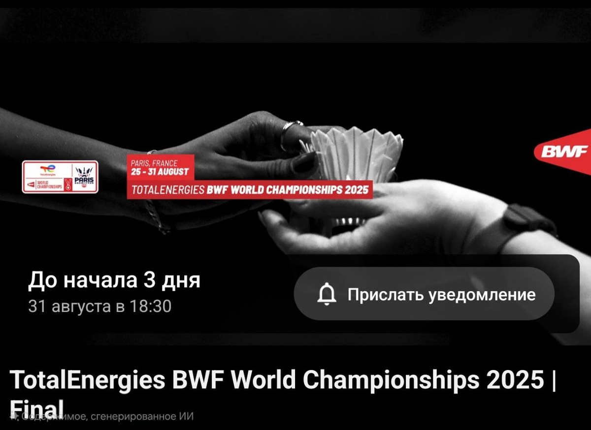 Финалы чемпионата мира по бадминтону 2025. Этот чемпионат уже ознаменован несколькими сюрпризами. GINTING потерпел поражение от Toma Popov, LiShiFeng проиграл в напряжённом матче первого круга японцу Tanaka, а датский микст обыграл один из сильнейших микстов мира. Что ждёт нас в финалах? Смогут ли европейцы быть на вершине? Или азиатские спортсмены снова заберут подиум? В воскресенье на МатчИгра с Кириллом Земсковым будем комментировать все финалы. #чемпионатмира2025