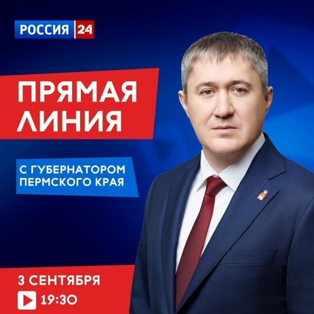 ⚡️Губернатор Пермского края Дмитрий Махонин ответит на вопросы жителей в прямом эфире 3 сентября в 19:30. Оставить свои обращения можно: 🔸под этим постом vk.com/wall582714543_274104 🔸в личных сообщениях с губернатором 🔸во время эфира в соцсетях Эфир пройдёт на телеканале «Россия 24», а также на личной странице главы региона. 👉 Подписаться на Своё ТВ 👉 Прислать новоость