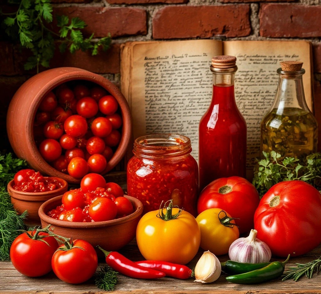 Привет, мои бунтари консервации! Это Ольга из Подмосковья — та самая, что маринует огурцы по методу разведчиков и варит облепиховую настойку от тысячи болезней. Сегодня вскрываю тему, которую вы просили в комментариях: куда девать 20 кг помидоров, которые одновременно поспели на грядках. Пока соседи раздают урожай или выбрасывают, я превращаю его в золото: аджика, лечо, томатная паста и даже томатный джем! И всё это — без стерилизации и сахара, по методикам советских заводов, которые работали на оборонку. Готовьте блокноты — будет жарко! Данные Росстата : 40% урожая помидоров в частных хозяйствах пропадает из-за незнания методов переработки. Мы исправим это сегодня! 3 фатальные ошибки, которые губят ваш урожай 1. Закладка перезрелых помидоров с трещинами → В них уже началось брожение. Ваша банка взорвется через неделю. Лайфхак: Разрежьте помидор. Если мякоть вокруг плодоножки белая — можно консервировать. Если розовая — только на соус! 2. Смешивание сортов в одной банке