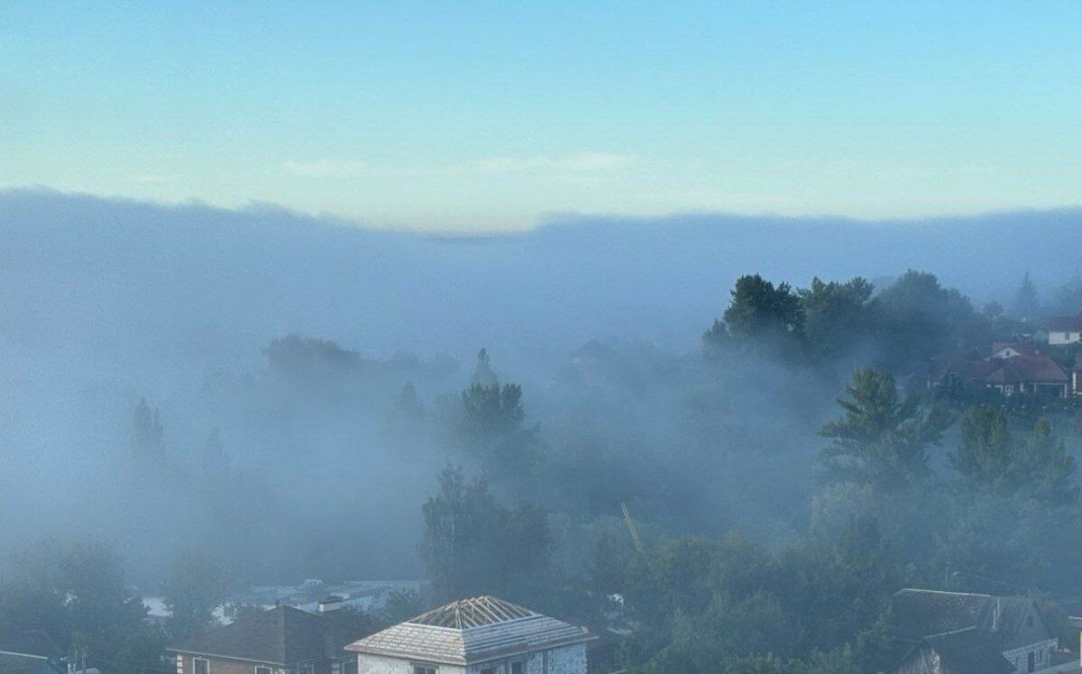 Горожане предполагают, что такой густой туман мог образоваться из-за реки.