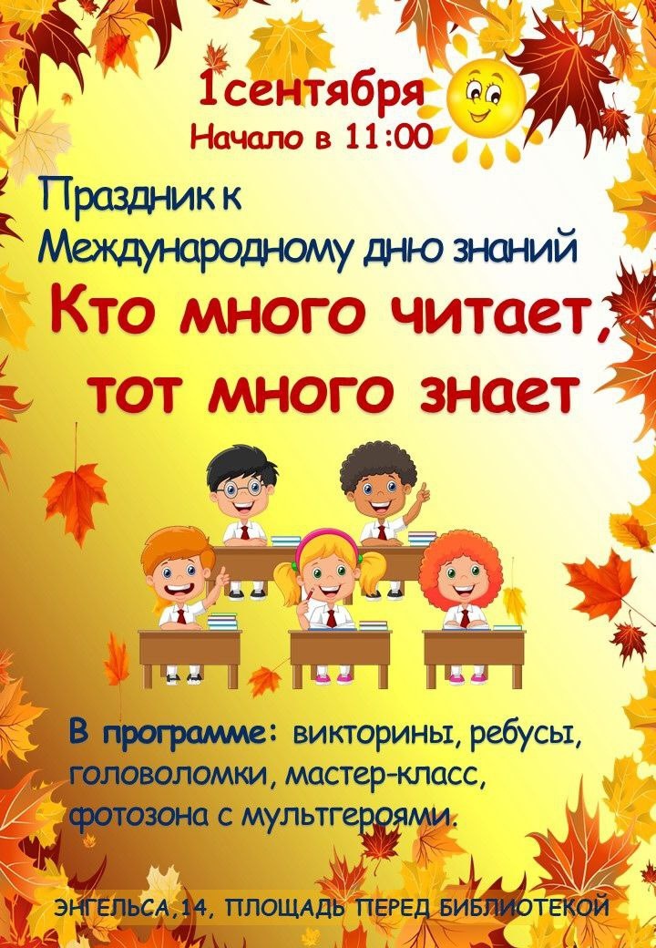 🎉1 сентября в 11:00 на площади перед Центральной библиотекой пройдёт праздник к Международному дню знаний!
