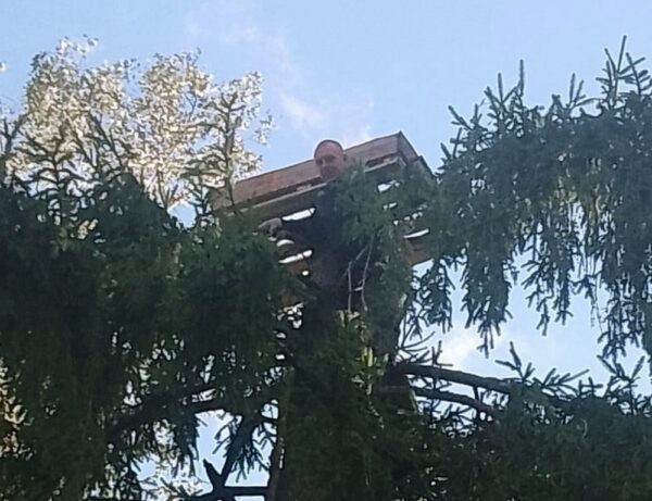 Основание для будущего жилья птиц было установлено на сломанной ураганом ели на территории школы на хуторе Новоалександровский, рассказал известный калужский орнитолог Юрий Галчёнков.