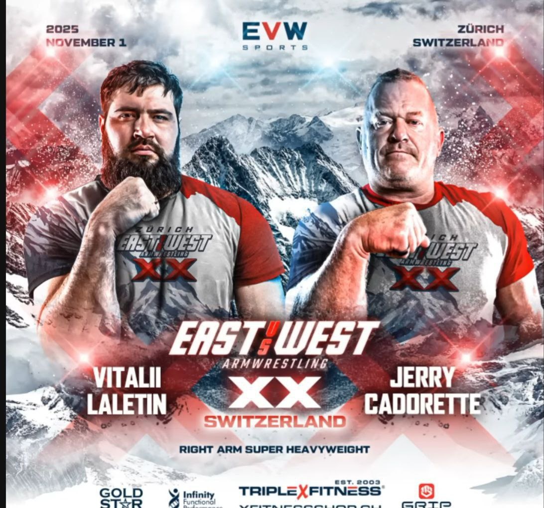 🚨 Официальный анонс долгожданного поединка Виталия Лалетина vs Джерри Кадоретт | Правая рука, супер тяжёлый вес, 1 ноября, East vs West 20, Цюрих. 🇨🇭 ❗️ Буквально вчера мы с вами дискуссировали на тему возможного армфайта Лалетина с Джерри, и вот, сегодня уже появились официальные анонсы. Ну что тут сказать, наконец-то:) ❓ Ваш фаворит господа в этом армфайте вечера? 🏆 - Виталя 🆚 🔥 - Джерри Наш канал | Чат | Магазин @MusiSs_Sport_bot #armwrestling #VitalyLaletin #JerriCadorett #EvsW