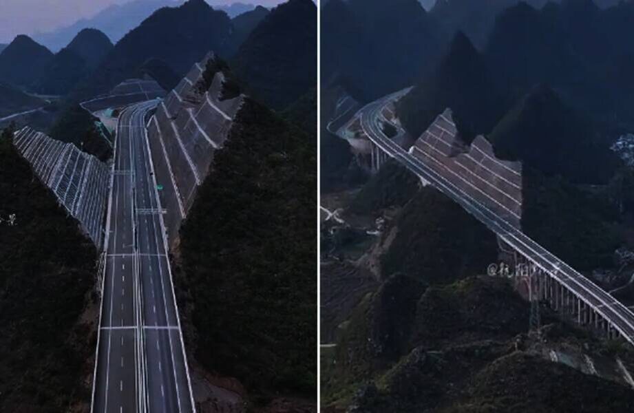 Провинция Гуйчжоу на 92% состоит из гор и скал, что делает ее живописным местом для фотографирования. Мы рассказывали, что тут даже есть горы, которые часто принимают за пирамиды. Однако ландшафт стал не только магнитом для путешественников, но и настоящим кошмаром для автомобилистов: транспортная доступность здесь очень плохая. Китайские власти решили кардинально изменить ситуацию и построить новую скоростную автомагистраль. Трасса должна соединить несколько районов и обеспечить жителей доступом к новому 625-метровому мосту через реку Бэйпань, который должен стать самым высоким в мире.