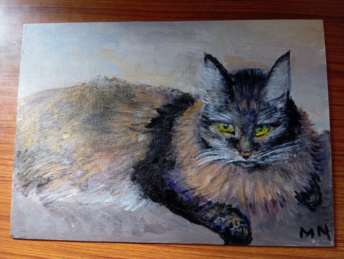 В этом семействе из двух котов и кошки, Котя - самый старший и авторитетный кот. Кот, переживший травму брошенности своими хозяевами, у которых он прожил четыре года. Подруга рассказала, как он попал к ней. Его история самая трагичная, если Асю она купила котенком за 1000 руб, Саву нашла в коробке среди брошенных котят и он, как самый шустрый, просто запрыгнул к ней и она его забрала к себе домой, не смогла вместе с другими котятами передать в приют. Котя жил у ее знакомых и она его знала раньше. Знакомая позвонила и рассказала, что они решили завести собаку и кот стал не нужен, и они его просто отнесли на помойку и там оставили. Подруга не смогла к этому спокойно отнестись и побежала на эту помойку, где нашла Коту в полной растерянности неподвижно сидящим. Котю фотографировала первым, он степенно вышел мне на встречу, принесенный мной корм есть не стал, вернулся в зал и занял самое мягкое и удобное место на пол дивана. Сначала он отворачивался от меня и на меня не смотрел. Сделала 15
