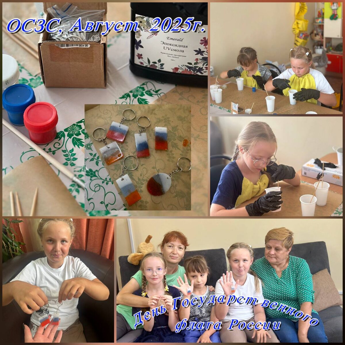 В честь Дня Государственного флага России для опекаемых ребят и их законных представителей прошёл патриотичный мастер-класс — изготовление брелока из эпоксидной смолы в цветах нашего триколора. В процессе создания поделки участники узнали историю российского флага и значение его цветов, а также обсудили, почему этот праздник важен для каждого из нас. Готовые брелоки превратились в маленькие, но значимые символы единства и гордости. Атмосфера мастер-класса получилась очень тёплой, и каждый участник унёс с собой не только важный сувенир, но и познания о родной стране и ее символе - флаге.