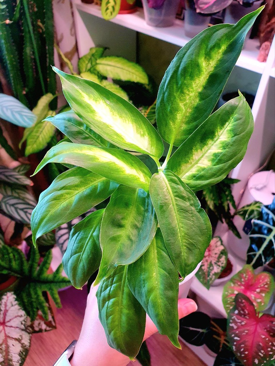 #диффенбахия Компактным считается сорт Диффенбахии Макулаты Камилла 💚 Хотя в магазинах встречаются и крупные экземпляры, но может просто немного другой сорт?💚 Моя пока малышка, листочки растит не очень большие. Надеюсь, она такой и останется, хочется только, чтобы белая область на листьях была побольше и поярче 💚