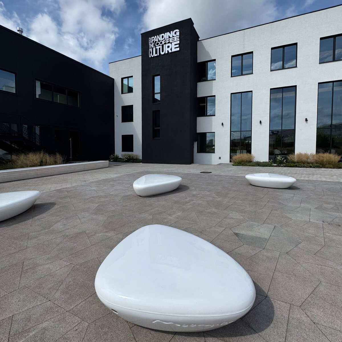 Производство Tasty Coffee находится среди других промышленных зданий. Но на общем фоне их территория похожа на оазис. Несколько современных лаконичных зданий и небольшой парк, которому могут позавидовать городские общественные пространства. В парке много растений, столы для пинг-понга и зона со скамейками. В офисном здании работает кофейня, открытая для посетителей. Глядя на это, невольно начинаешь завидовать сотрудникам, работающим в этой красоте. Внутри меня ждала экскурсия.