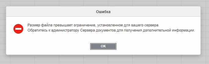 Onlyoffice. Размер файла превышает ограничение, установленное для вашего сервера.