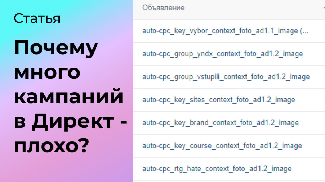 Если взять отдельно сервисы контекстной рекламы, то буквально год назад я запускал десятки гипотез в неделю и большинство дробил на отдельные кампании ради удобства аналитики. Это позволяло находить рабочие гипотезы и масштабировать их. Деление шло на разные типы таргета, продукта, аудиторий, интересов, поведения и т.д. При этом с каждым днём сервисы контекстной рекламы всё больше внедряют автостратегии и обучение. Например, Яндекс Директ мотивирует переходить на Мастер кампаний, давать больше «крови» на обучение стратегий. Меняется и мой подход к рекламе, теперь я стараюсь не дробить сильно гипотезы в рамках контекстной рекламы, почему расскажу далее. Несмотря на очевидную пользу в отчётности, т.к. свести данные по кампаниям гораздо удобнее, чем вытаскивать из utm_content типы таргета групп, массовое деление сейчас играет плохую шутку. На самом деле причина одна — это создание путаницы для автостратегий и алгоритмов под капотом алгоритмов. Объясню на примере. Условно на уровне кампани