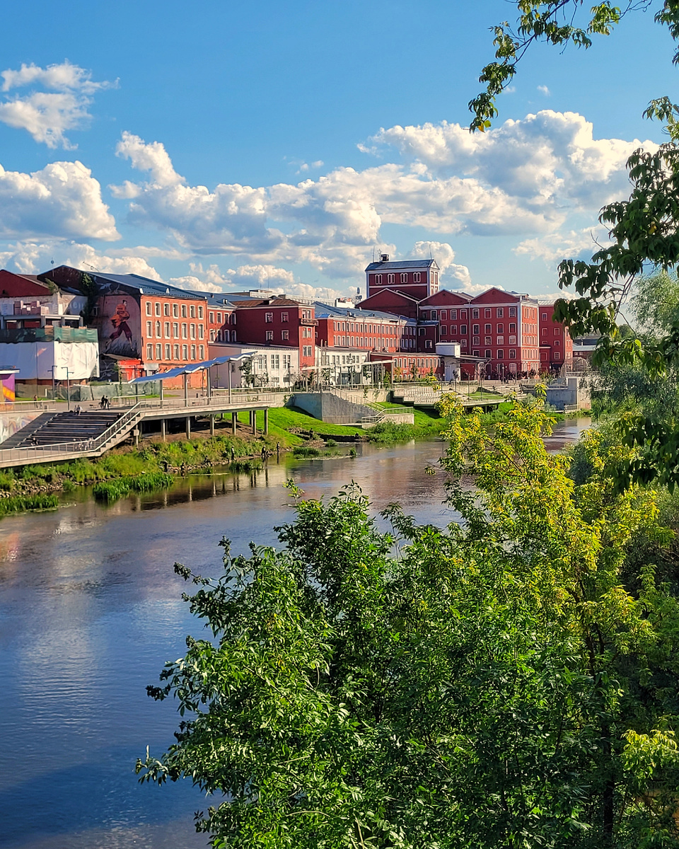 Я очень давно собиралась в Орехово-Зуево. Только каждый раз ехала куда-то ещё, а его отменяла. Другие места казались более заманчивыми, да. Но этим летом решительно сказала сама себе — сколько можно-то, надо доехать уже наконец. И доехала))) ...возможно, и не зря долго откладывала — на набережной навели такую красоту, что прям ух. А местные рассказывали, что недавно там было не пройти — заросли, разруха и тоска зелёная. Я приехала бы и расстроилась. Сейчас же — наоборот порадовалась. ...от Орехово-Зуево))) Будто в Питере по Севкабелю гуляешь — похоже визуально. Классно тут обыграли бывшие морозовские фабрики и вписали в их пространство зоны отдыха, кафе, арт-объекты, муралы. Вроде и история на месте, но при этом стильно. ...в архитектуре, созданной при Морозовых. Нас впечатлил Зимний театр, созданный учеником Шехтеля Александром Галецким. И водонапорная башня рядом хороша — будто кремлёвская. И казармы напротив — смотрела и думала, как же красиво строили. ...для рабочих — ну общага по