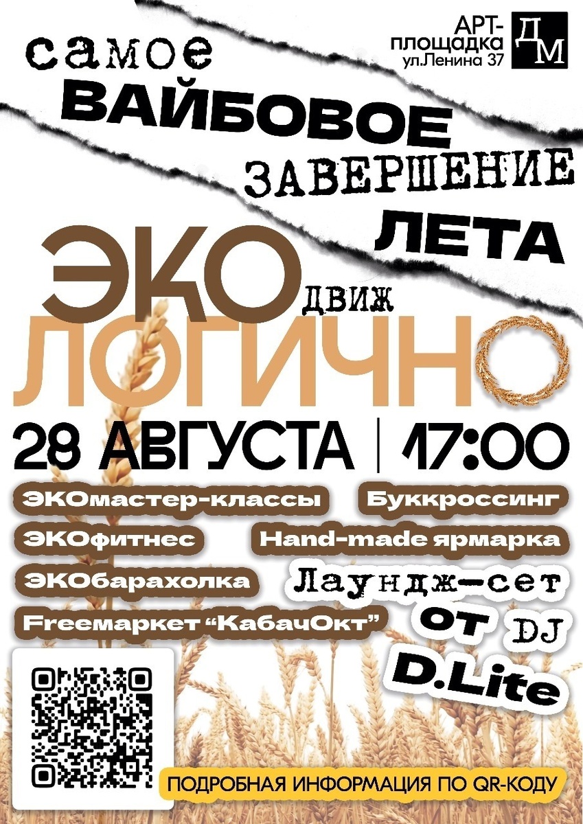 Дворец молодёжи приглашает и гостей Октябрьского на мероприятие «Экологично», завершающее летние каникулы. Организаторы обещают увлекательную программу: диджей создаст приятную музыкальную атмосферу, а для детей и молодёжи проведут разнообразные бесплатные мастер-классы. Можно будет сделать яркие фотографии в тематической фотозоне, посетить ярмарки изделий ручной работы. Любители чтения смогут насладиться времяпрепровождением, участвуя в буккроссинге. Для всех желающих — бесплатные занятия экофитнесом. Также можно будет посетить ярмарку изделий ручной работы, экобарахолку, где удастся недорого продать одежду, учебные принадлежности. Этой категории участников необходимо пройти регистрацию по ссылке https://forms.yandex.ru/u/68a5755690fa7b26c7318295/. Участники бесплатного маркета «КабачОКТ» смогут подарить вещи в хорошем состоянии, которые уже не нужны, а также поделиться излишками овощей и фруктов. Мероприятие состоится 28 августа, с 17.00 до 19.00. Автор: Анастасия Нигматуллина