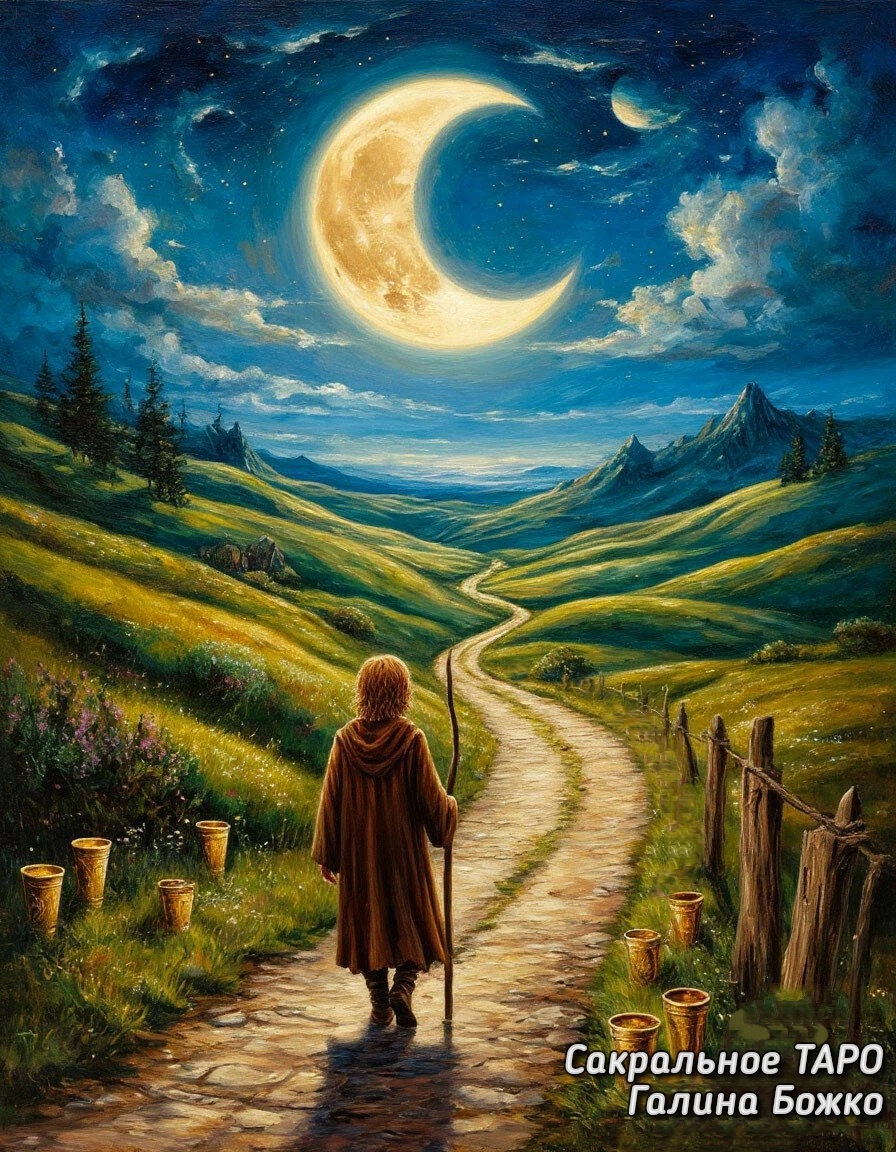 8 кубков Энергии этого дня способствуют развитию, поиску нестандартных путей и выходу из зоны комфорта. Новые места, знания, люди, образ мышления помогут взглянуть на многое под другим углом. Ищите мотивацию или непривычные подходы. Отношениям карта несет возможности для роста взросления и расставания с иллюзиями.