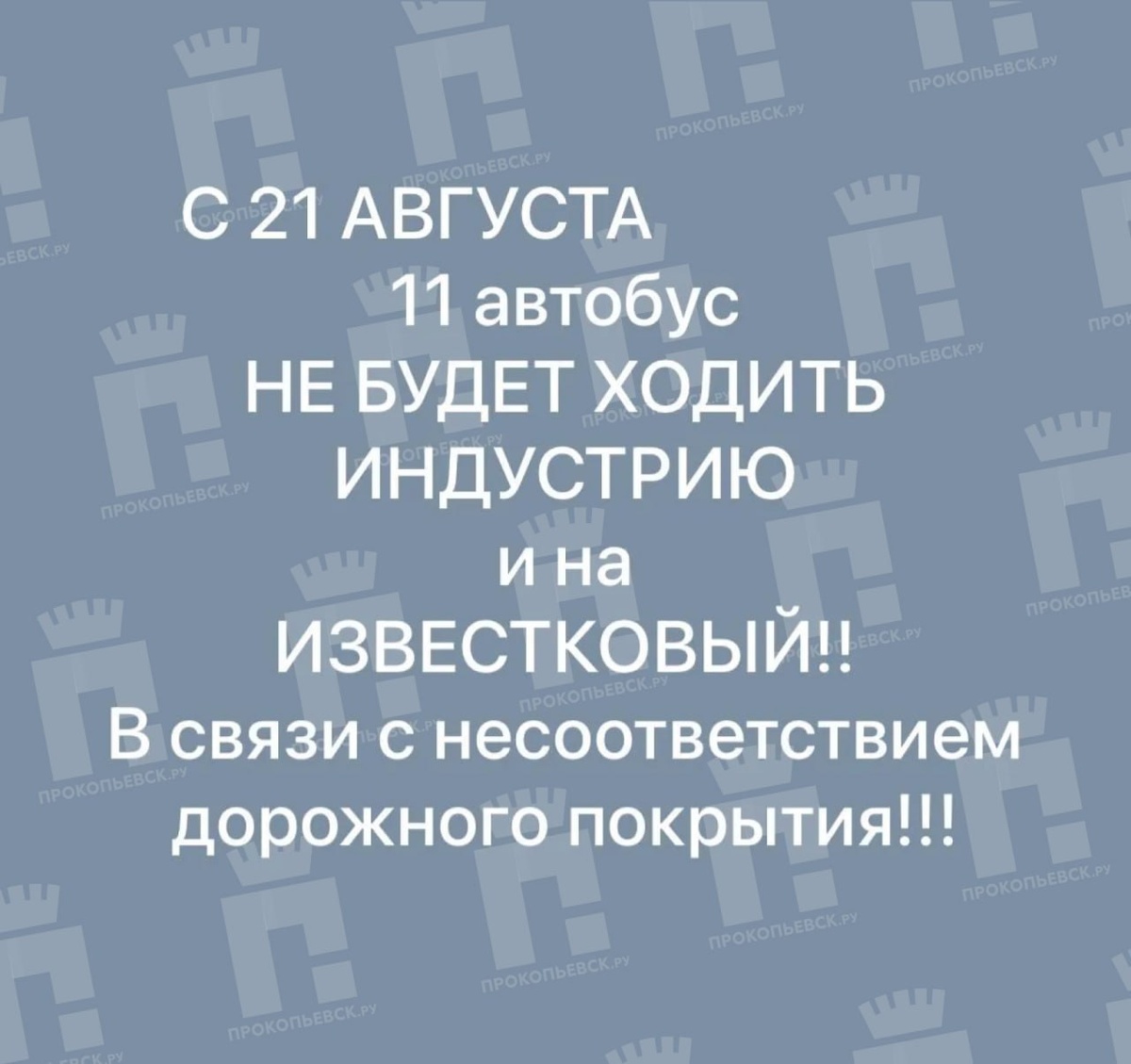 😡🤬🤯😤Мы жители поселка Индустрия, у нас с сегодняшнего дня отменили рейсовый автобус №11, из-за того что дорога в ужасном состоянии. Как быть людям, как добираться до работы, как студентам добираться до учёбы? Помогите пожалуйста решить вопрос! Ситуацию прокомментировали в Министерстве транспорта Кузбасса: Действительно, с 21 августа рейсы маршрута №11 выполняются в сокращенном режиме до ДК Зенковский ввиду ненадлежащего состояния дороги. Содержание дорог местного значения, поддержание дорог в надлежащем состоянии для обеспечения безопасности и бесперебойности движения – компетенция администрации г. Прокопьевск. ✍✍✍ТУТ✍🗞🗞ЗДЕСЬ🗞 ⚡️BOOST КАНАЛА⚡️