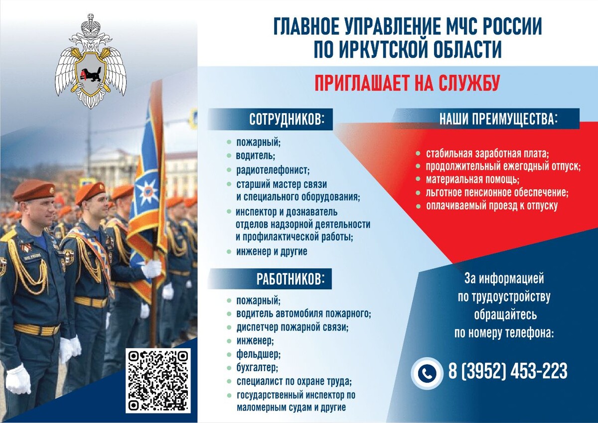 📍ВАКАНСИИ 📍Водитель автомобиля (пожарного) – п. Усть-Ордынский, пгт. Жигалово, пгт. Качуг. Среднее общее образование. Наличие водительского удостоверения категорий: В,С,D Основные задачи: ⭕реагирование на ЧС и пожары; ⭕ремонт специальной техники; ⭕ведение технической документации. 📍Пожарный – п. Усть-Ордынский, пгт. Жигалово, пгт. Качуг. Среднее общее образование, физическая подготовка. Основные задачи: ⭕работа по тушению пожаров; ⭕спасению людей; ⭕ликвидации последствий аварий и стихийных бедствий. 📍Начальник пожарно-спасательной части (пгт.Еланцы) 📍заместитель начальника пожарно-спасательной части (пгт. Качуг) Высшее профессиональное (техническое) образование и стаж работы в Государственной противопожарной службе на руководящих должностях не менее 3 лет. Основные задачи: ⭕руководство деятельностью пожарной части; ⭕выезд на места тушения пожаров; ⭕ликвидации аварий, стихийных бедствий. Справки по телефону: 8 (3952) 453-235 доб. 5063, 45-32-23 Подписывайся