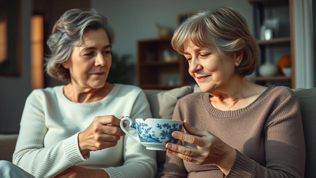 В гостиной пахло слегка выцветшими книгами и чаем с бергамотом. Ольга приехала к матери впервые за несколько месяцев — работа, дети, вечная спешка. Мария Петровна, как всегда, встретила её сдержанной улыбкой, будто годы не оставили на ней следа, кроме серебристых прядей. — Чай будешь? — спросила она, доставая из буфета старый сервиз с тонкими голубыми цветами. Ольга кивнула и вдруг заметила: одна чашка стояла отдельно, чуть в стороне, с едва заметной трещиной у края. — Мам, почему эта чашка всегда особняком? Она ведь целая, — Ольга взяла её в руки, разглядывая рисунок. — Я помню, ты никогда не давала из неё пить. Мария Петровна опустилась на стул, вздохнула, будто решилась на что‑то важное. — Это была чашка твоего деда, — сказала она тихо. — Он всегда пил только из неё, даже когда сервиз почти весь разбился. Ольга удивлённо подняла брови. Про деда в семье почти не говорили, словно его существование было чем‑то постыдным или неуместным. Она помнила лишь смутные детские обрывки: высокий,