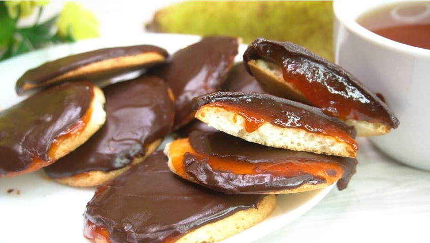 Так как печенье получается очень вкусным я готовлю сразу по 2 порции, вторая порция у меня с сливовым джемом и молочным шоколадом.