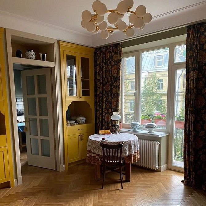 Кажется, что обустроить квартиру в старом фонде — сложно, дорого и не стоит усилий. Что там вкладывать, если стены шатаются, а все вокруг старое? Но герои нашей подборки совершенно опровергают этот миф! Им удалось превратить эти невзрачные квартиры в настоящие уютные гнездышки с характером. Не верите? Тогда смотрите сами! Эта квартира в самом центре Москвы, покоряет с первого взгляда. Маленькая, но невероятно уютная, с резным балкончиком, выходящим в осенний кленовый садик — тут хочется наслаждаться свежим воздухом и природной красотой. Хозяйка — Елена (@stalinka_na_chernoi) — просто влюбилась в это место и почти сразу же въехала, предварительно сделав ремонт в комнатах. В светлой гостиной-гостевой она обновила полы, вписала в интерьер старинный буфет и поставила круглый стол у окна. Рядом — современный светло-серый диван и мягкие пуфы, чтобы устроить настоящий релакс у камина с книгой и чаем. Кухня — настоящий мастер-класс по минимализму с американской ноткой: никакого громоздкого г