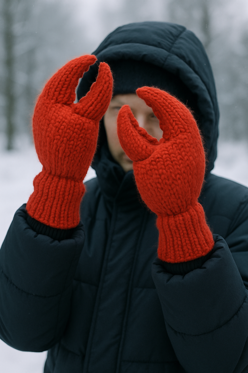 🤔 варежки-клешни, икона стиля прям из моря. «Зачем?» — робко спрашивают практичные люди. «Почему нет?» — торжественно отвечает промышленный бредогенератор, закатывая рукава-панцири. Ведь если дизайнеры уже продавали нам кроссовки-копыта и сумки-кирпичи, логично перейти к окончательному аргументу: 🦀 краб. С ним не поспоришь — он щёлкает. Шах и мат 😂 модники: либо вы в тренде, либо вам защипнули пальцы. Сначала производители убеждали нас, что рукавички-бинты защитят от холода и плохих решений. Теперь же они убеждают: 🦀 клешня согреет лучше любой шерсти, ведь внутри — «термо-караболокно», зарегистрированное в Роспатенте вчера ночью. Фэшн-гуру тут же взяли курс на TikTok: «Щёлкни этой зиме!», и подростки массово подставляют руки, похожие на драгоценный салат «Крабовый по-дорому». Практики возражают: «Как доставать проездной?» — На что им отвечают фото моделей, грациозно касающихся смартфона одним кончиками… хитина.