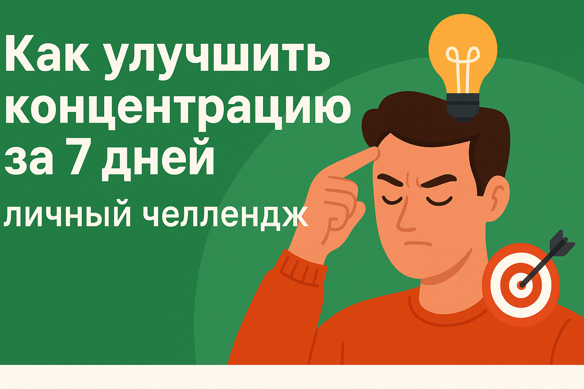 В мире постоянных отвлечений концентрация стала суперсилой. Мы листаем ленты, переключаемся между задачами, теряем фокус — и вместе с ним продуктивность. Я решил проверить: можно ли за 7 дней заметно прокачать концентрацию? Без ретрита в горах и цифрового детокса. Только реальные условия, работа, привычки и немного дисциплины. Первый шаг — понять, где я теряю внимание. Я замерил продуктивность в течение дня, отметил пики и провалы. Главные враги: уведомления, многозадачность и усталость. Цель челленджа — увеличить время глубокой концентрации минимум на 30%. Концентрация начинается с утра. Я внедрил короткий ритуал: 5 минут дыхания, 10 минут планирования, чашка воды и никаких экранов до начала работы. Техника Pomodoro — 25 минут работы, 5 минут отдыха. Я адаптировал её под себя: 40/10. Главное — не отвлекаться в течение сессии. Это резко повысило качество фокуса. Я удалил приложения, которые крадут внимание: соцсети, игры, лишние мессенджеры. Оставил только то, что связано