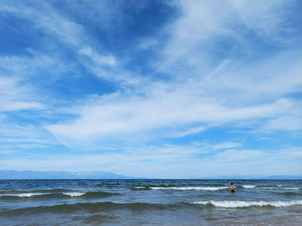 3 дня на Бурятской стороне Байкала мы жили в поселке Максимиха, и съездили еще в соседний поселок Усть-Баргузин, посмотреть на Баргузинский залив. В Усть-Баргузине сходили в центр реабилитации нерп. Сотрудники центра с помощью дронов ищут на Байкале нерпят оставшихся без матери и забирают их сюда. Новорожденные нерпята не умеют самостоятельно есть и даже плавать, в центре их выхаживают, откармливают, учат плавать и выпускают обратно в Байкал. Со стороны Бурятии Байкал окружают чудесные песчаные пляжи. Поэтому мы с удовольствием предались пляжному отдыху, что было особо приятно после многочисленных переездов и хождений по горам и просторам. Здесь мы прокатились на катамаране, взяли в аренду сапы и первый раз попробовали на них покататься. Если сравнивать с горячим Югом, то на Байкале все не горячее, а теплое. Теплые камни, песок, ветер, солнце-отдыхать и гулять максимально комфортно. На пляже можно спокойно провести целый день и не устать от изнурительной жары. Люди , которые не перен