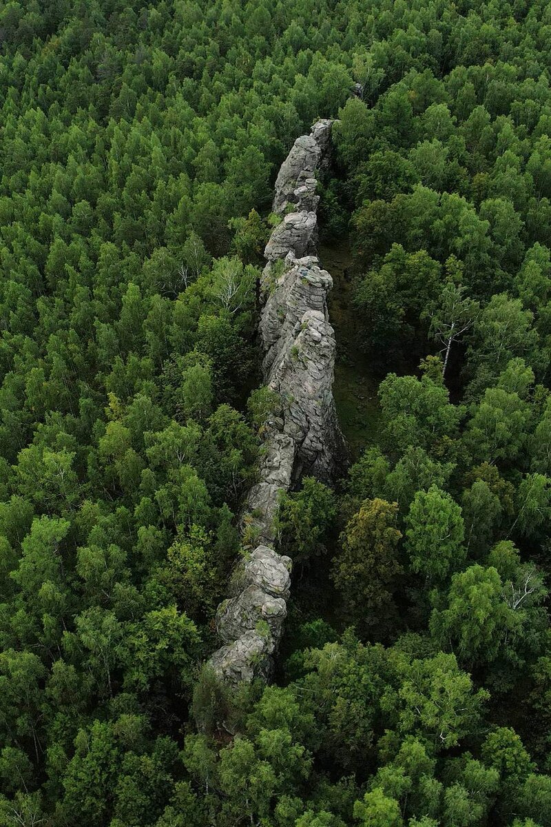 На вершине Семибратской горы в Свердловской области возвышаются уникальные скалы-останцы, известные как «Семь Братьев». Когда-то здесь находился цельный гранитный массив, который постепенно разрушался под действием ветра и осадков. Со временем монолит распался на отдельные каменные башни высотой до 45 метров.