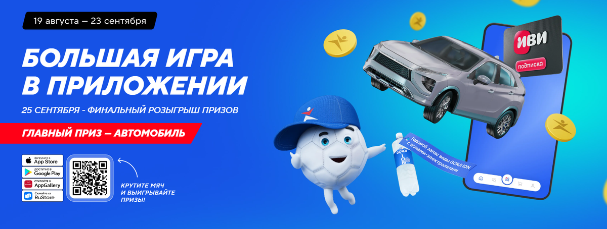 - Гарантированные призы за игровое действие — раскрутка «Мяча-3»:
