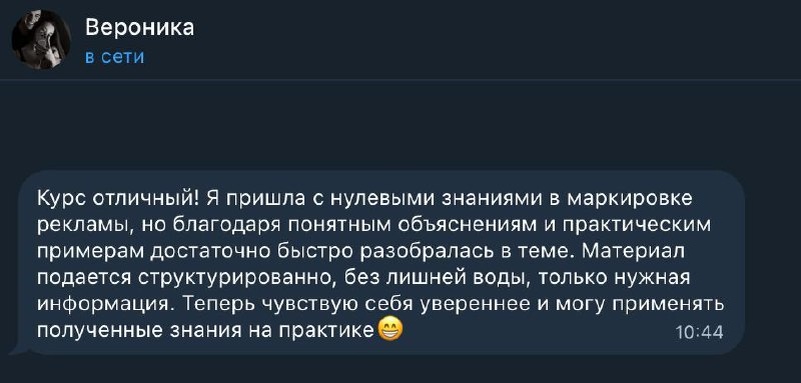 Получила еще один отзыв о Курсе по маркировке рекламы 🥰 Сегодня отправила целых 2 сертификата о его прохождении 👏 ❗️Сертификаты даю только тем, кто прошёл тест. Это такая проверка своих знаний и закрепление результата. Скоро дойду до образовательной лиценизии, думаю об этом всерьез. Хочется, чтобы были дипломы гос образца, все по серьезному 🔟 Не доходят все руки оформить кейс и рассказать вам про нашу совместную работу с юристом Марией Сухаревой @MSuhareva_pravo над проектом Фестиваля самопознания, психологии и здоровья "ProMagic" @promagic_irk. Девчонки до сих пор благодарят, тепло отзываются ❤️и самое главное - всегда могут задать вопрос. А они, поверьте мне, возникают ещё долго... особенно при постоянном изменении законодательства. Вчера, например, разбирали тему "писем счастья" от госуслуг об уплате 3% сбора за рекламу. Да-да, кому-то они уже активно стали приходить. ❤️❤️❤️❤️ Рекомендую проверить свой кабинет ЕРИР, чтобы потом не было "ой..." 😌 СтратегияPROдвижения