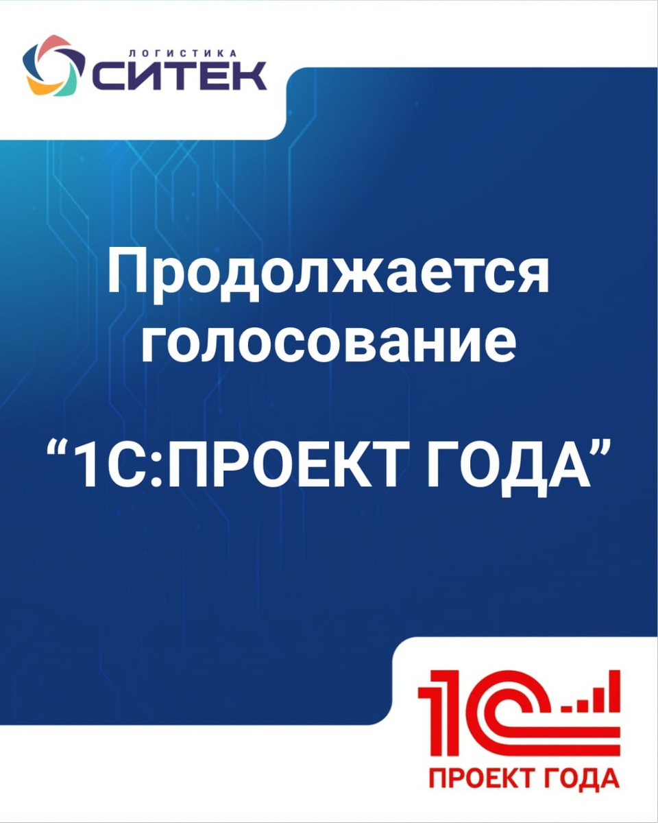 🔥Остаются считанные дни до завершения голосования «1С:Проект года 2025»! Вы еще успеете отдать свой голос за проект компании «СИТЕК»! ⬇️ Напомним: СИТЕК участвует в конкурсе «1С:Проект года» — ежегодной международной премии «1С». Компания уже не раз становилась победителем в различных номинациях и снова готова бороться за лидерство. В этом году в конкурсе представлен проект «РЕВОЛЮЦИЯ В РЕТЕЙЛЕ: ВНЕДРЕНИЕ 1С:WMS НА СКЛАДЕ ZOLLA С РОСТОМ ПРОИЗВОДИТЕЛЬНОСТИ Х2». Подробнее о проекте здесь. 🔽Чтобы проголосовать🔽: Перейдите по ссылке страницу проекта. Авторизуйтесь и нажмите кнопку «Голосовать». Спасибо за вашу поддержку🙏!