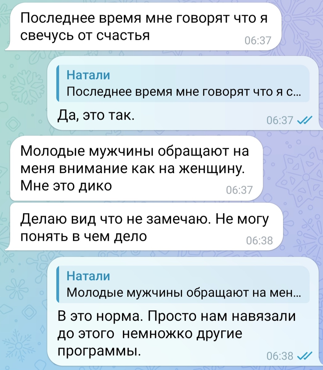 ☯️Как это происходит.Раскрывается сердце,человек выходит на высокие вибрации.А та энергия,которая выше,творит чудеса.Поэтому так и происходит.Меняются внутреннее состояние человека.И внешний мир отражает человеку то,что он испытывает внутри.И если в сердце человека любовь и радость,вот такое чудо начинает происходить.Я неоднократно говорю о том,что Любовь с годами не проходит.Кто так думает,это старые навязанные программы.Они уходят со временем,когда человек начинает проводить над собой внутреннюю терапию.Происходит исцеление сердца.Кто готов, присоединяйтесь.
